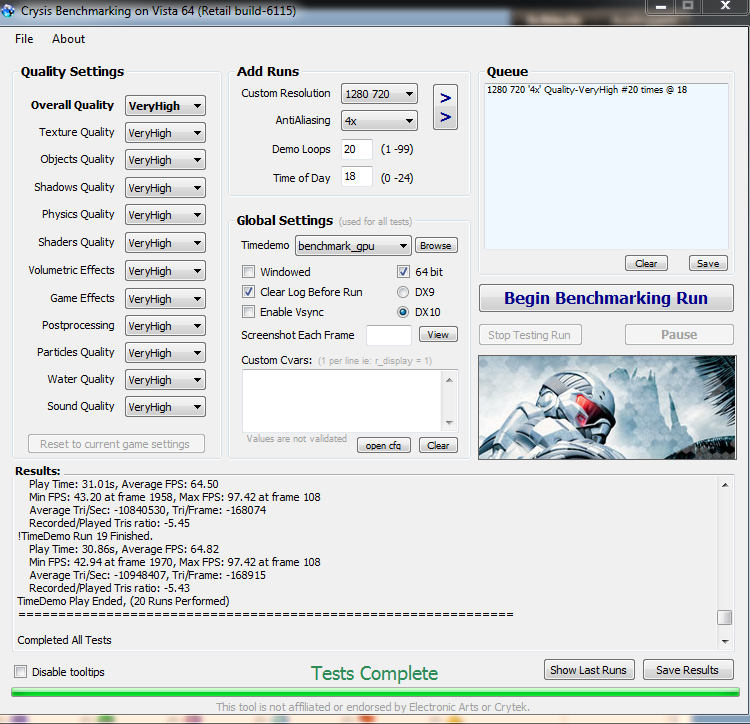 Ähm Dirk? Setz mal deine Crysisbenchsettings etwas höher...Du siehst in deiner Auswertung, dass deine Grafikkarte nicht 100% ausgelastet wird. Momentan erreicht sie nicht mal 90%, wenn ich das gerade richtig erkenne.