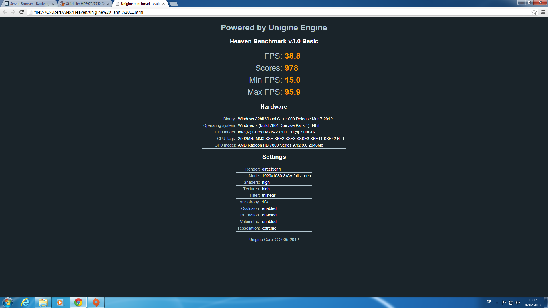 Also die Asus würd ich nur holen wenn ich unbedingt drei oder mehr DP-Anschlüsse wollte. Deren Luftkühlung auf der 7970 DC2 ist nicht so der Bringer gegenüber der 6970 DC2 - die Lüfter drehen sowohl im Leerlauf als auch unter Last deutlich weiter auf. Bei der 6970 konnte man zudem noch PWM 12 % einstellen - damit war sie wirklich ziemlich leise - bei der 7970 hat irgendein affe beschlossen dass man die Lüfter nicht mehr unter 20 % regeln kann und da machen sie dann schon über 1000 rpm und sind nicht mehr direkt leisetreter. Achso und meine DC2 hat netterweise auch ne fixe Spannung und die ist von anfang letztem Jahr, würd also nicht drauf bauen dass Asus' (nahezu) top-of-the-line karte ne offene Spannung hat. Musst nur mal nach 7970 DC2 voltage lock suchen, da gibts haufenweise Beiträge in Foren wo leute die Spannung nichtmal mit Asus' eigenem Tool verstellen können. Komischerweise scheint von der Karte noch ne zweite Version im umlauf zu sein bei der die Spannung offen ist und sich sogar trotz nicht-referenz-design mitm MSI Afterburner verstellen lässt.Blublah schrieb:Bei guter und leiser Kühlung kommt nur ein nicht-Referenzdesign in Frage. ASUS hat die beste Kühlung ist aber etwas teurer. Gigabyte ist dagegen recht günstig und hat auch eine recht ordentliche Lösung. MSI und Sapphire kommen auch noch in Frage würde ich sagen. Und die Spannung kann mein eigentlich bei allen genannten ändern so weit ich weiss.
