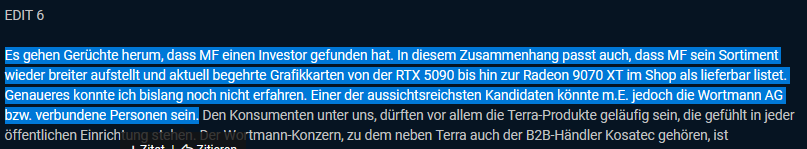 Wenn man das offen kommuniziert hätte, hätten wohl einige eher positiv und wohlwollend pro Mindfactory berichtet und Mitleid/Verständnis gehabt.