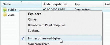 hier unter anderem "Offline Files"