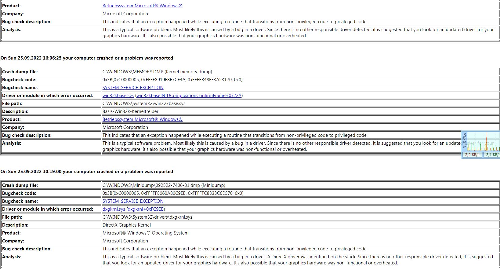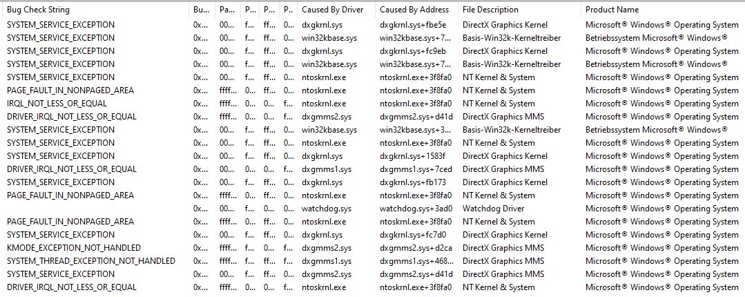 Du hast ja eingangs schon richtig erkannt, dass viele Bugchecks in DirectX Modulen ausgelöst werden. Einige davon, von denen wir keine Dumps haben, sind quasi faulty-driver-only Bugchecks (