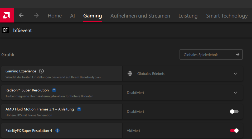 Im Treiber taucht dann ein "neues Spiel" auf: "bf6event" und FSR4 ist aktiv.