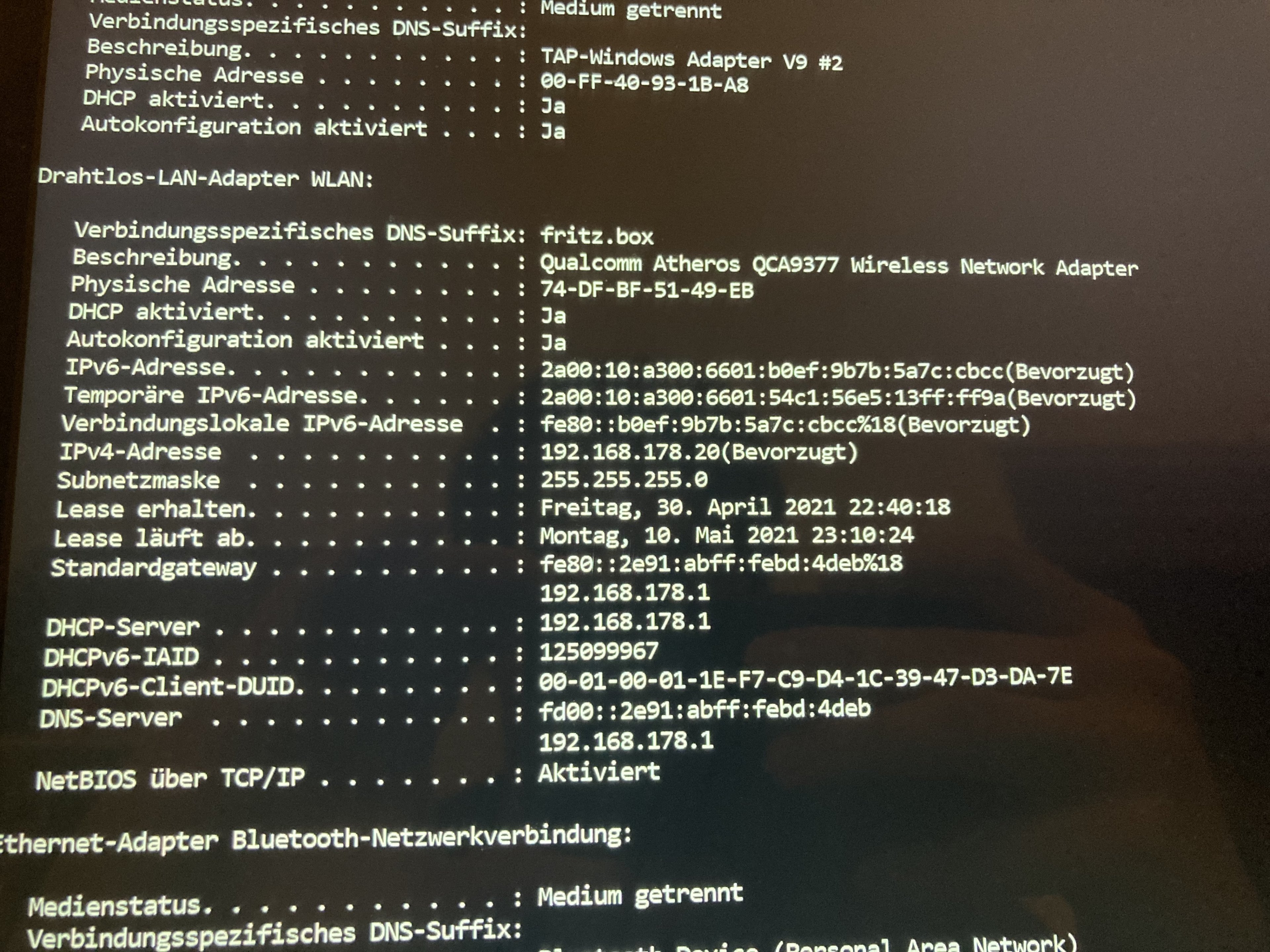 Einrichten hat soweit geklappt. Er konnte eine Internetverbindung via IPv4 und 6 herstellen. Jedoch habe ich nicht Zugriff auf alle Seiten. Nach Recherche habe ich gelesen, dass man IPv6 ausschalten solle. Also habe ich das Häckchen weggemacht. Nun verbindet er nur noch über IPv4 und zeigt mir die Verbindung auch an aber öffnet keinerlei Internetseiten.