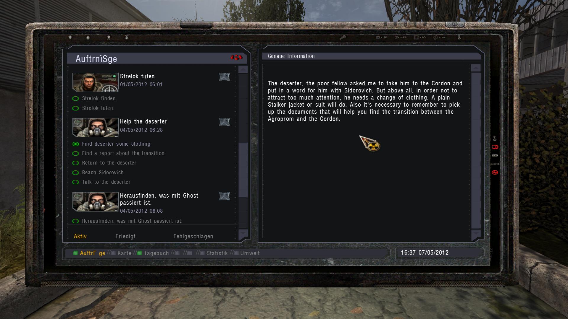 Wenn die Loner im Kordondorf auf einen schießen, bei Sido 20000 ablöhnen, sonst kann es sein, dass man aus Sidos Bunker kommt und alle Loner um den Bunkerausgang stehen und einen so lange zusammenschlagen und -schießen, bis man tot ist. Dazu reißen die einem ständig die Waffe aus der Hand. Dann hat man keine Chance. Denn wenn ihr die tötet, richtet sich Stalin gegen euch und der ist ziemlich kugelresistent. Alles mal ausprobiert.