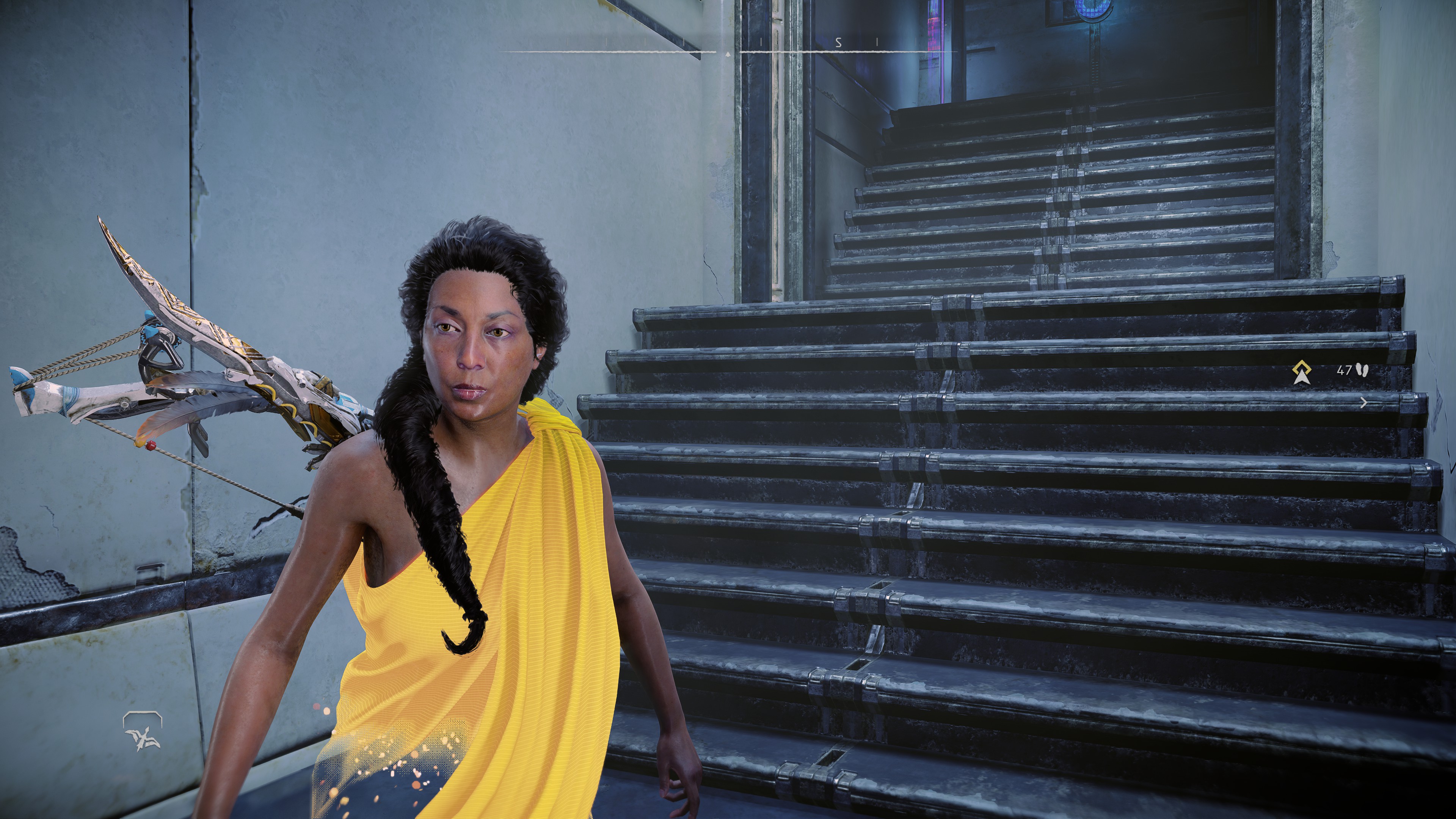 Dieser Charakter hat ein gelb leuchtendes Kleid wenn es im Spiel nun dunkel wird (Nacht oder jegliche Ruine ) wird das Bild durch das leuchtende Kleid so stark verdunkelt dass man kaum noch etwas sieht