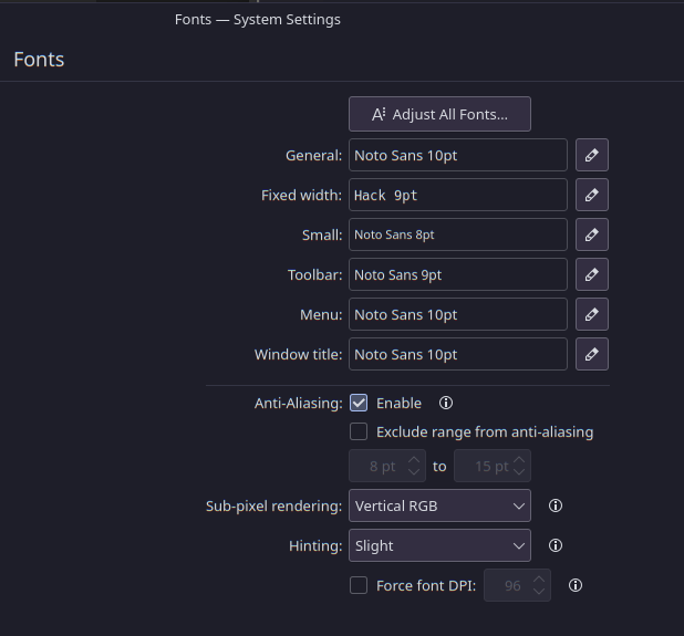 Mir war das Font rendering Problem bereits vorher bekannt wie bspw. hier erwähnt. Und ich muss sagen es ist exterm störend, nicht nur die roten Texte (inbesondere im Terminal) sind enorm unscharf. Generell ist Rot und Grün nicht wirklich sauber.