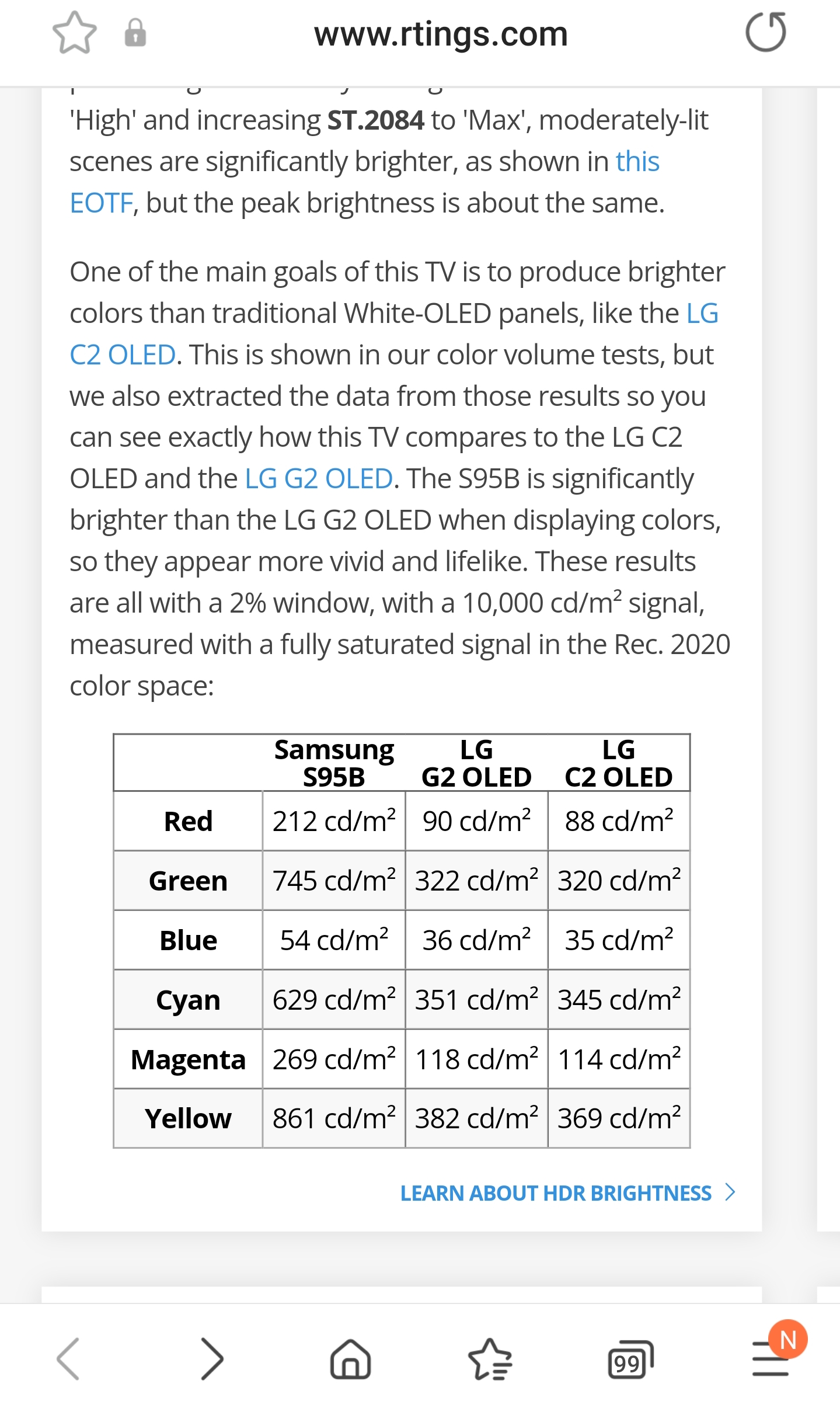 Hier mal die Gegenüberstellung der Farbhelligkeiten aus rtings aktuellem s95b Test, leider nur das 2% Fenster betreffend