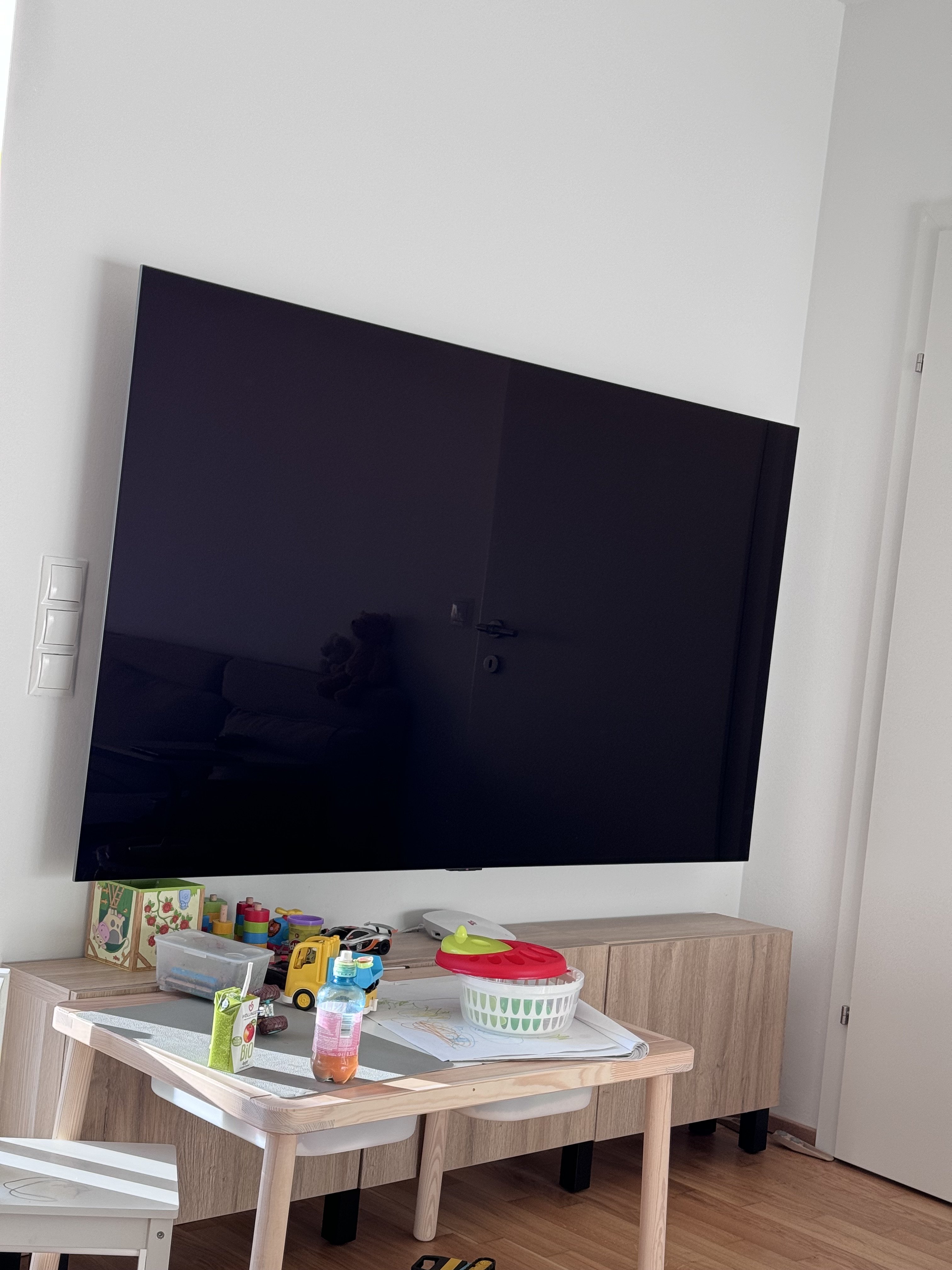 Wer natürlich einen noch tieferen Tisch hat oder das Teil direkt an die Wand hängt, der hat natürlich noch mehr Abstand. Allerdings stellt sich dann die Frage, ob es dann nicht ein 32 Zöller bei geringerem Abstand genauso tut. Die TVs haben schließlich nur 120 Hz. Die neuen 32 Zoll Monitore dagegen 240 Hz.