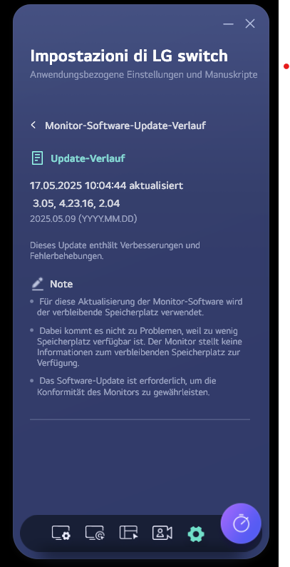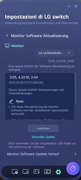 Gab es bei dir Probleme bei der Update Installation? Bei mir braucht es gefühlt 30 Minuten um 100% zu erreichen, danach startet der Monitor neu, scheint das Update zu installieren, startet danach neu aber die Software zeigt mir wieder das neue 3.05 Update als verfügbar an. Installierte Version ist weiterhin 3.01.Digitalsurfer schrieb:Es gibt ein Firmware-Update. [...]