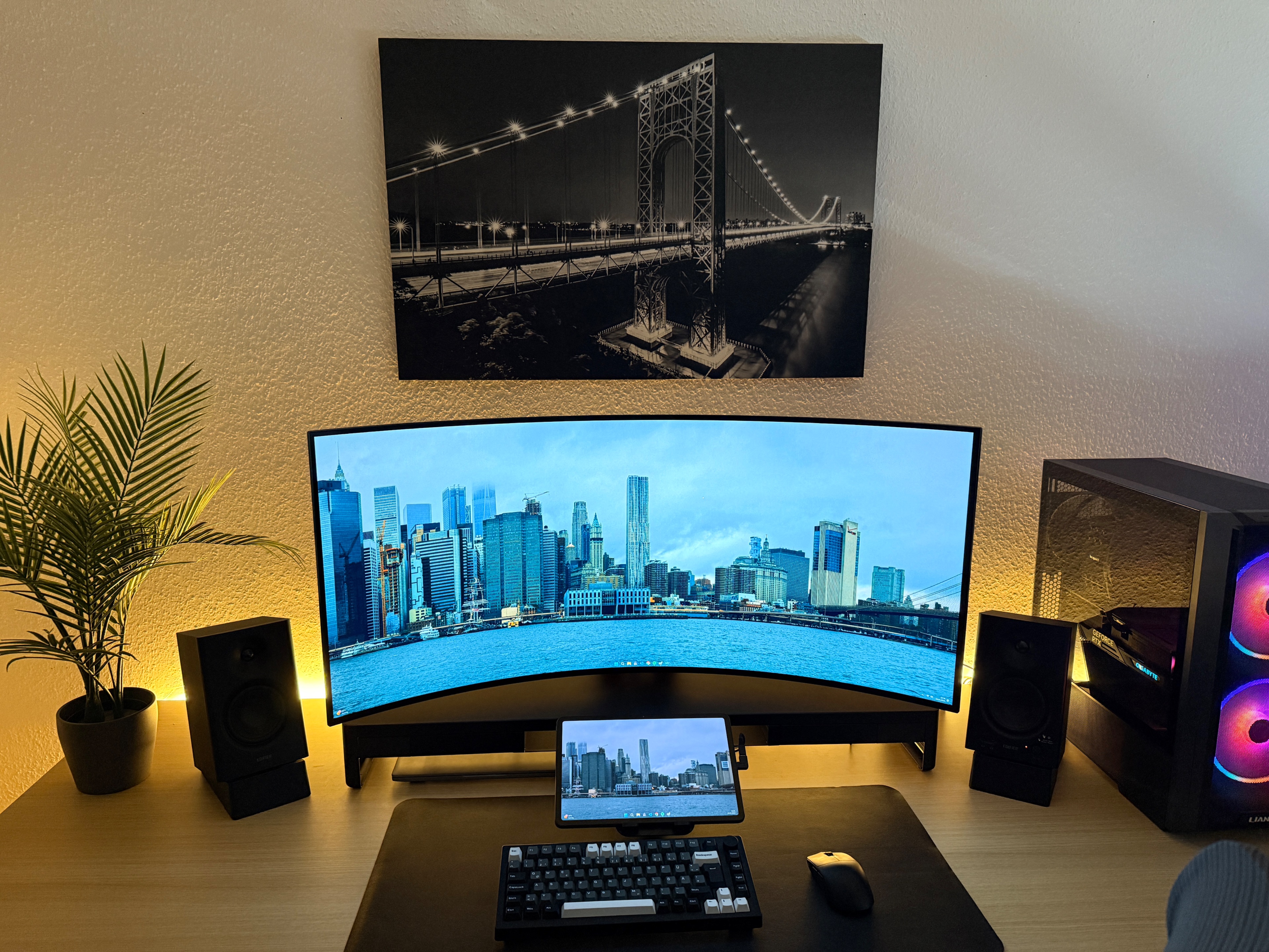 Das matte Coating passt für mich auch sehr gut, weil ich rechts neben mir ein großes Fenster habe und das die Reflektionen sehr gut reduziert (links oben z.B., wenn ich mich zurücklehne wie auf diesem Bild).