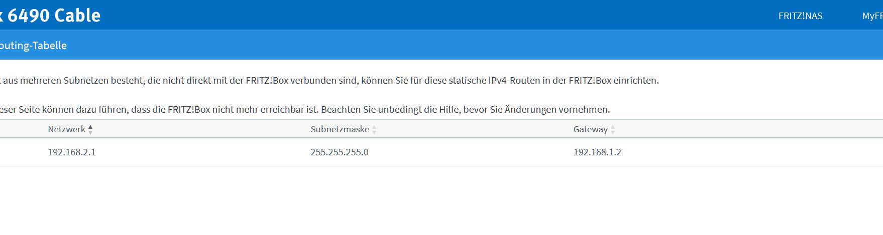 Allerdings hätte ich gerne ein statisches Routing zwischen dem AVM-Router und dem TP-Link Router angelegt, um ein Doppel-NAT zu vermeiden.