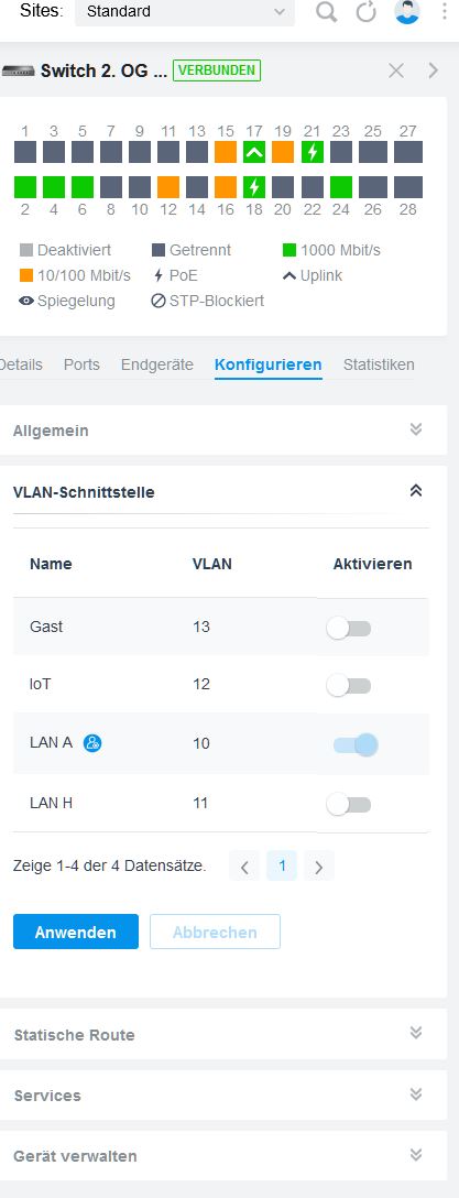 Nun habe ich allerdings festgestellt, dass alle Endgeräte im selben Netzwerk sind, nicht wie gewollt in unterschiedlichen VLANs.