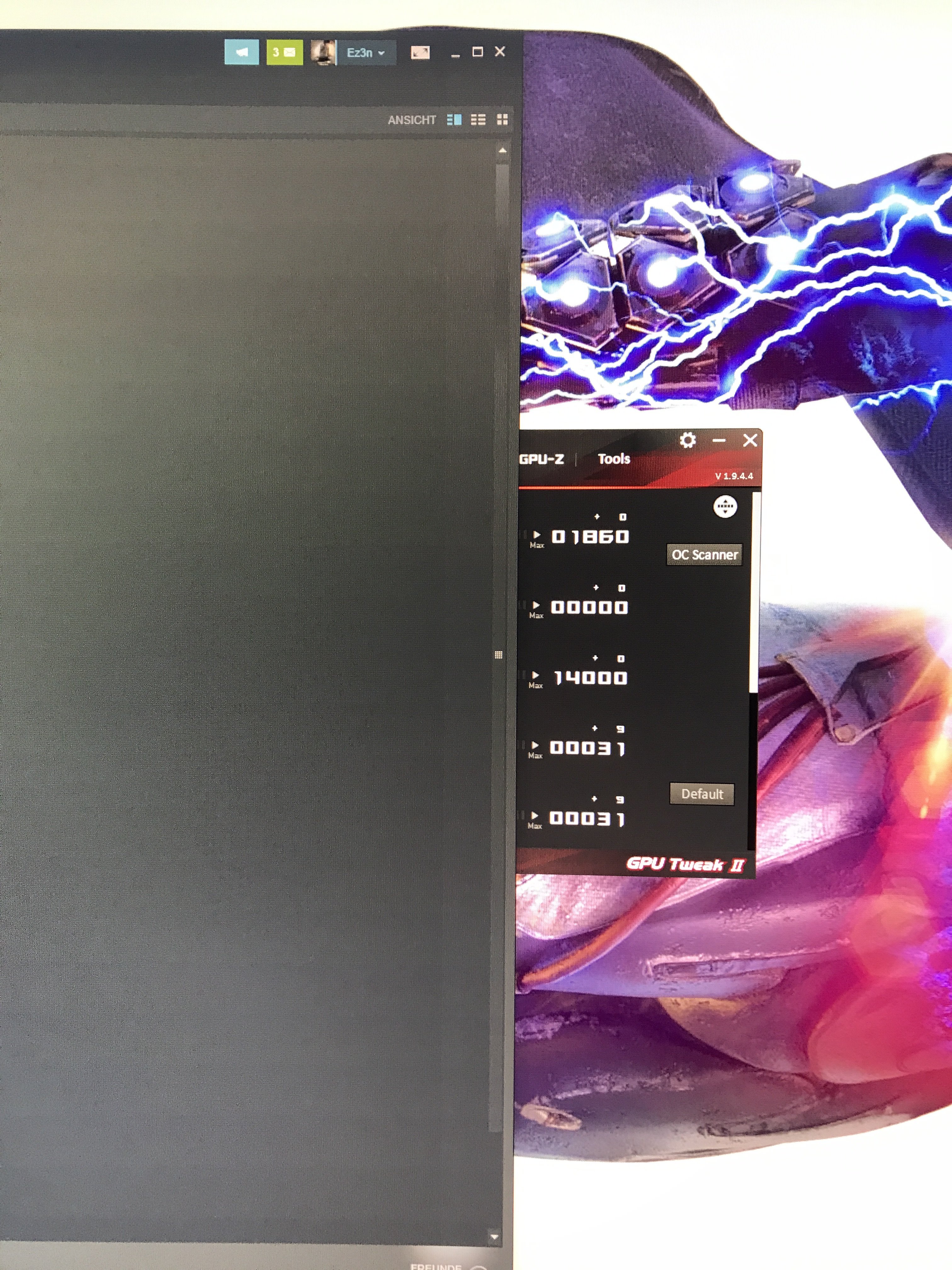 2) Der Bildschirm flackert beim aktiviertem Gsync. Ich hatte auch nen 60fps Video von der Nvidia Pendulum Demo aufgenommen, aber der Upload ist hier nicht möglich. Sobald ich in der Demo auf „no Vsync“ geklickt habe, war es weg.