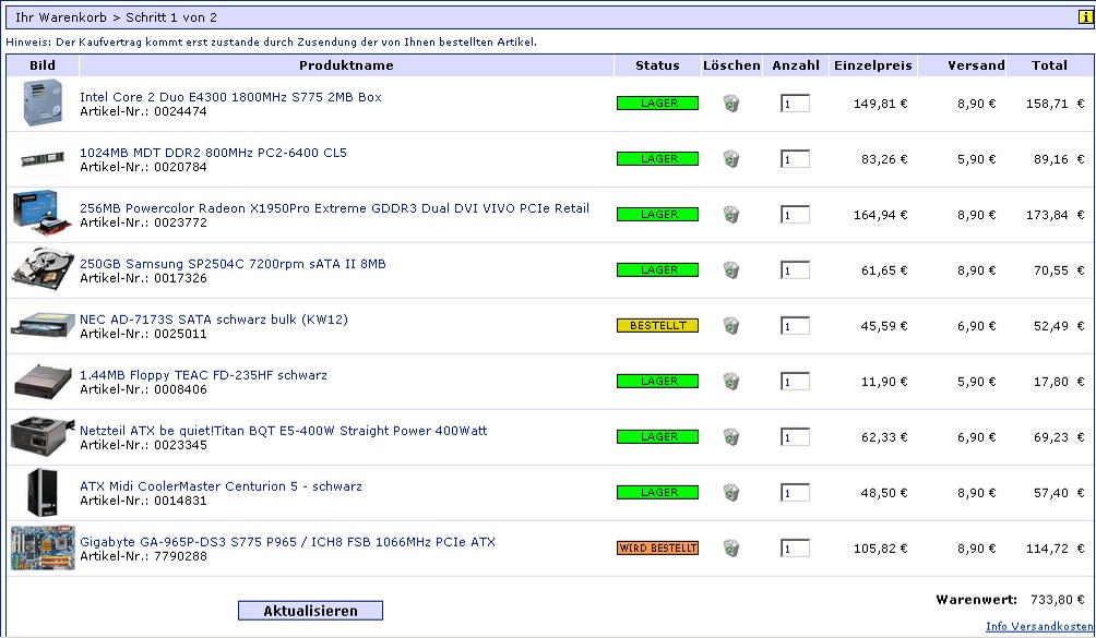 ich habe vor, mir nächste woche einen pc in komponenten zu bestellen und bisher war der shop meines vertrauens immer mindfactory.de (mf). doch dieser hat aus mir immer noch unerfindlichen gründen die preise letzte woche drastisch angezogen.