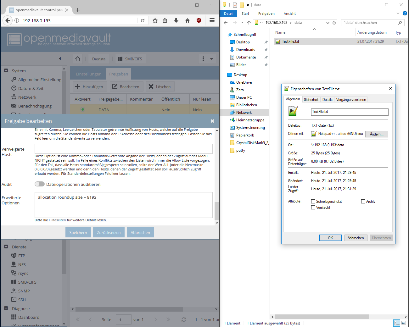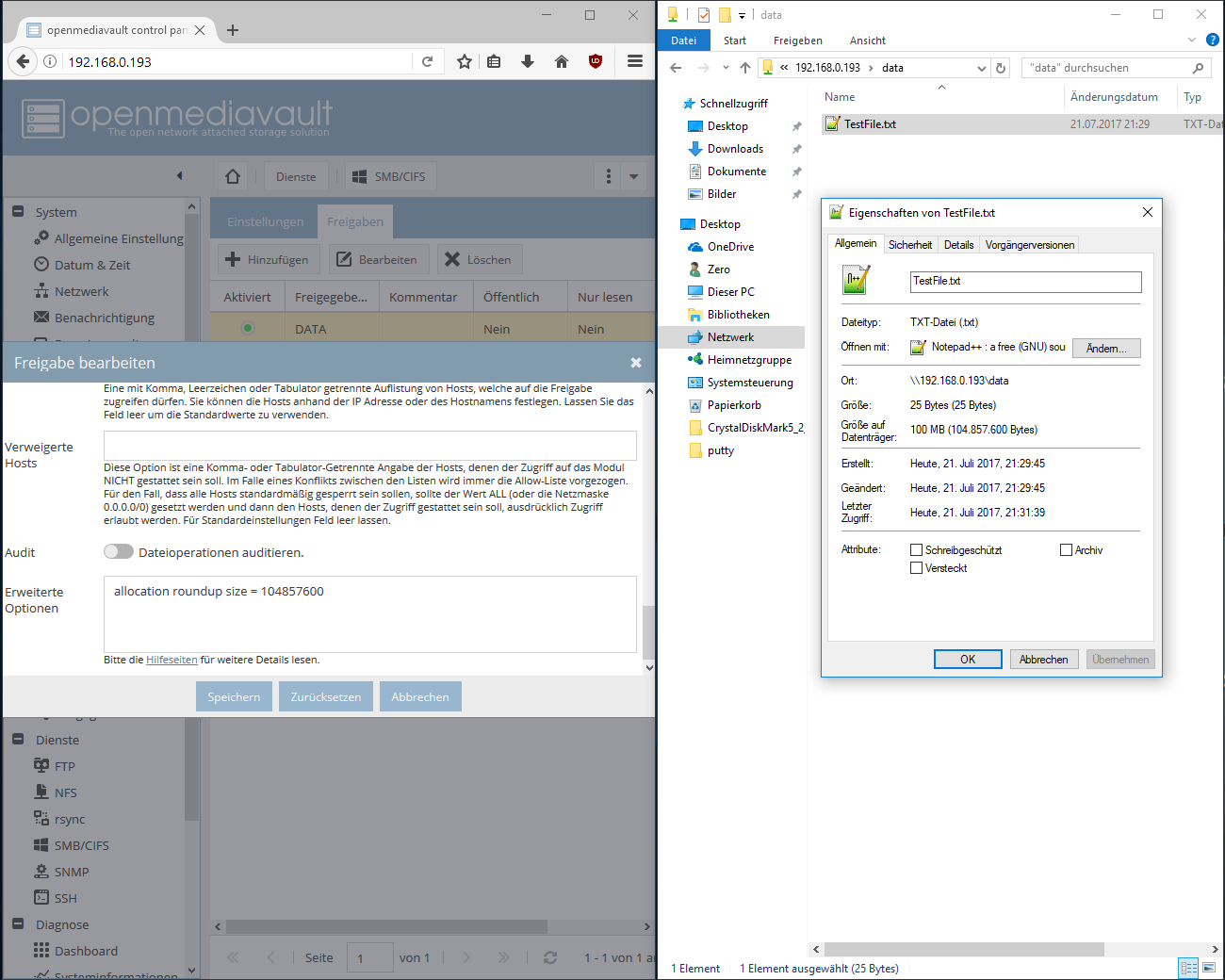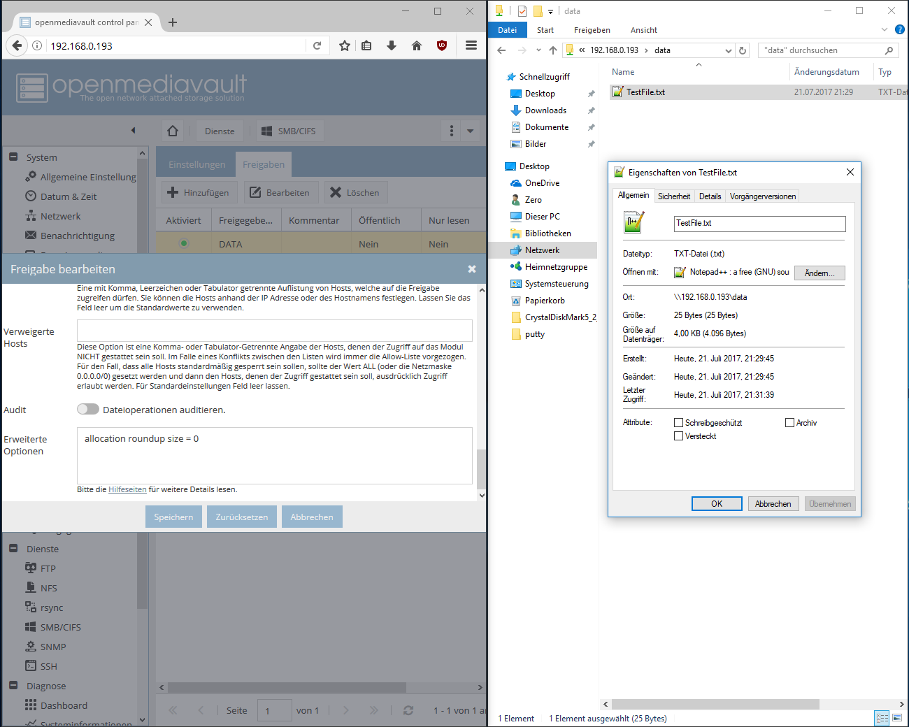 Und zwar sieht das so aus:egeal,welche Datei ich auf der Nas Festplatte speichere,die Dateigröße wird immer auf das nächste MB aufgerundet.Dadurch fehlt mir bei vielen kleinen Dateien sehr viel Hdd Kapazität.Ich habe schon unterschiedliche Formate probiert,die mir Omv bei der Erstellung eines Datenträgers zur Verfügung stellt(Ext3,Ext4,XJS),jedoch immer mit dem gleichen Ergebnis.Ich bin da abolut ratlos,hoffentlich hat da jemand eine Lösung zu.....