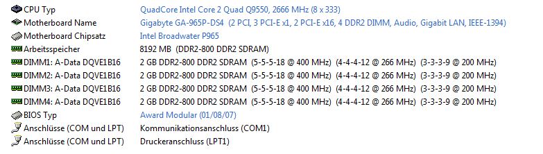 Ein Freund ist jetzt auf ein neues Board mit DDR3 umgestiegen und hat mir seine 8GB DDR2 geschenkt. Die habe