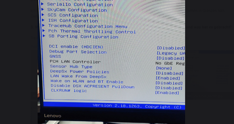 Meine Hoffnung ist, dass entweder sich jemand mit diesem Problem auskennt und Ideen für die richtigen Einstellungen hat oder vielleicht sogar den gleichen Rechner und mir irgendwie seine BIOS-Einstellungen abfilmen kann.