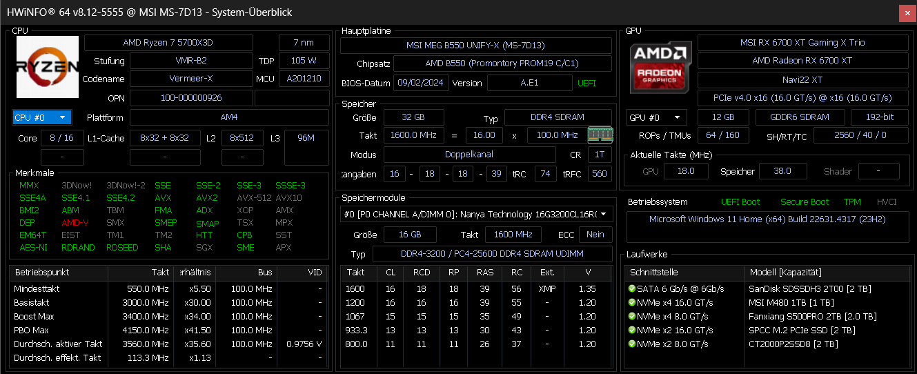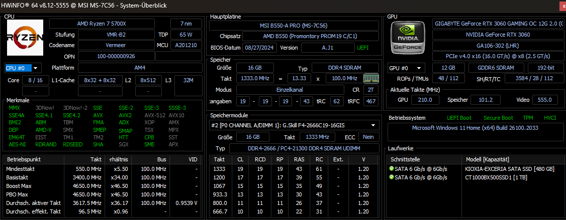 Kannst auch mal die Zusammenfassung vom System posten, von HWINFO64: