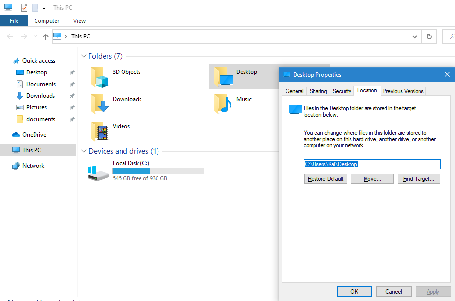 Funbktioniert wunderbar! Und danach kann man auch im OD unter den Sync-Ordnern den Desktop deaktivieren. Bleiben jetzt nur noch Ländereinstellungen die von einem Gerät zum anderen übertragen / gesynct werden, was lästig ist.Eagle_B5 schrieb:Du kannst die Location für den Desktop Ordner (und jeden anderen im User Profile) ganz einfach in den Eigenschaften ändern:
