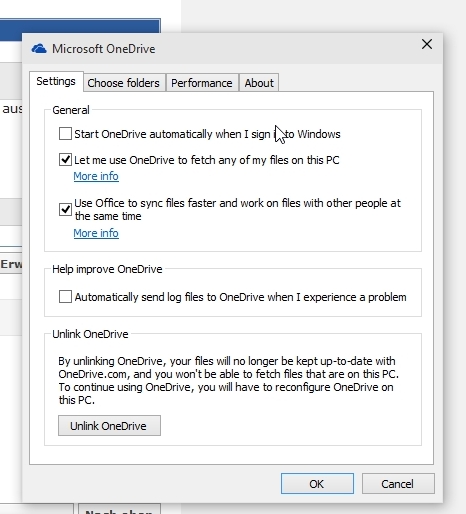 Ich finde diese Einstellung bei mir nicht, wenn ich rechtsklick auf das Onedrive Symbol und Einstellungen auswähle dann bekomme ich folgendes Fenster angezeigt: