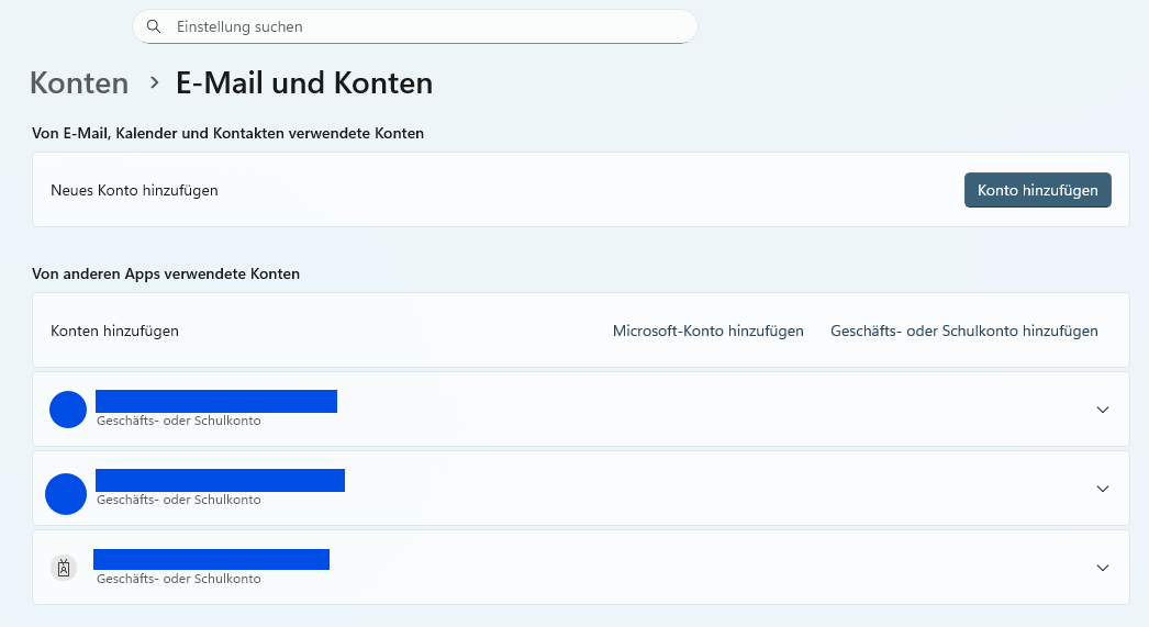 - Sobald ich mein Schulkonto (Azure AD / Microsoft Education) hinzufügen will,