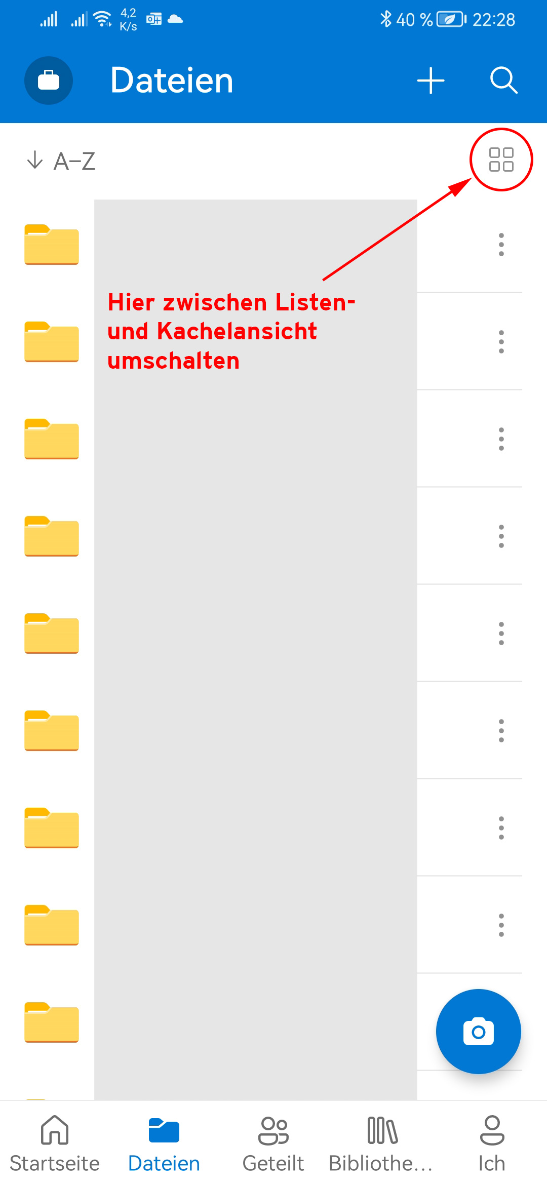 Ich habe heute OneDrive unter Android eingerichtet, aber jeder einzelne Ordner nutzt per default erstmal die Ansicht mit großen Vorschaubildern. Ich muss in jedem einzelnen Ordner erneut auf Listenansicht umstellen. Und ich finde in den Einstellungen einfach keinen Punkt, wo man die Default-Ansicht auf Liste umstellen kann!
