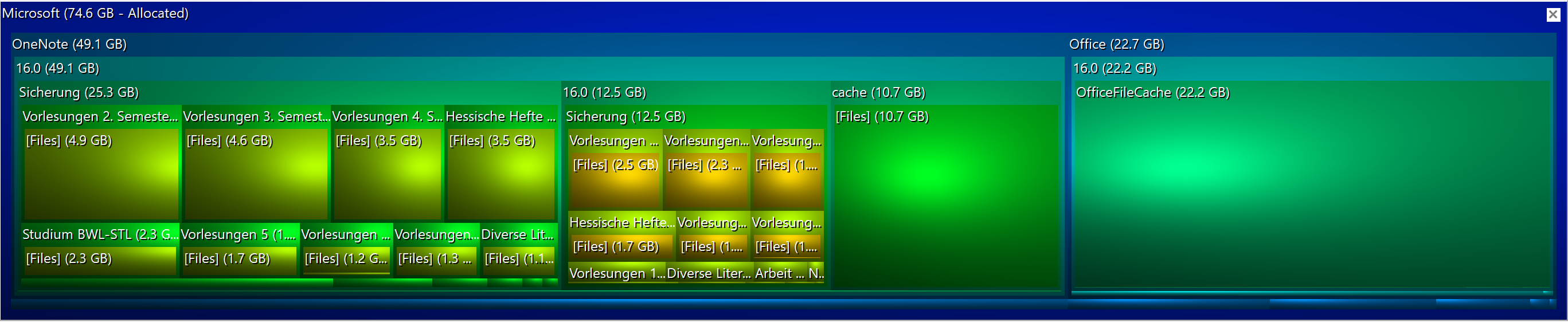 Desweiteren frisst MS Office und OneNote extrem viel Speicher, auf meiner internen Festplatte weshalb ich aktuell nur noch 6 GB frei habe.