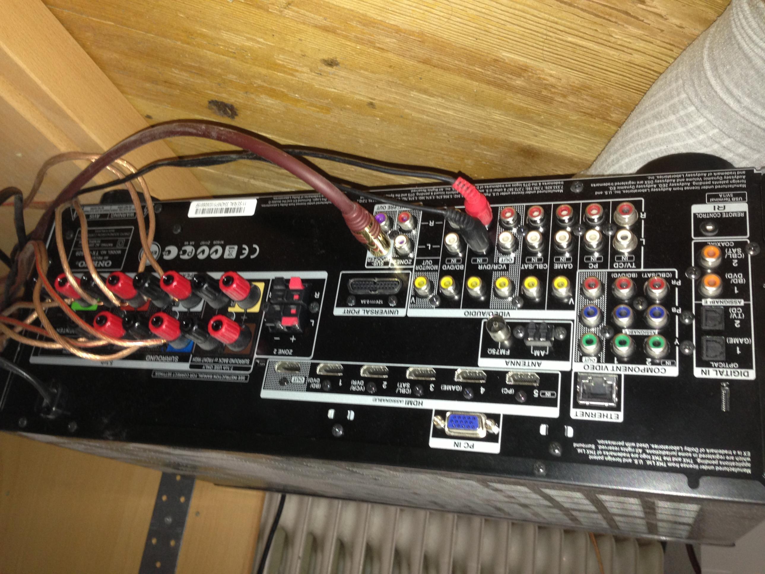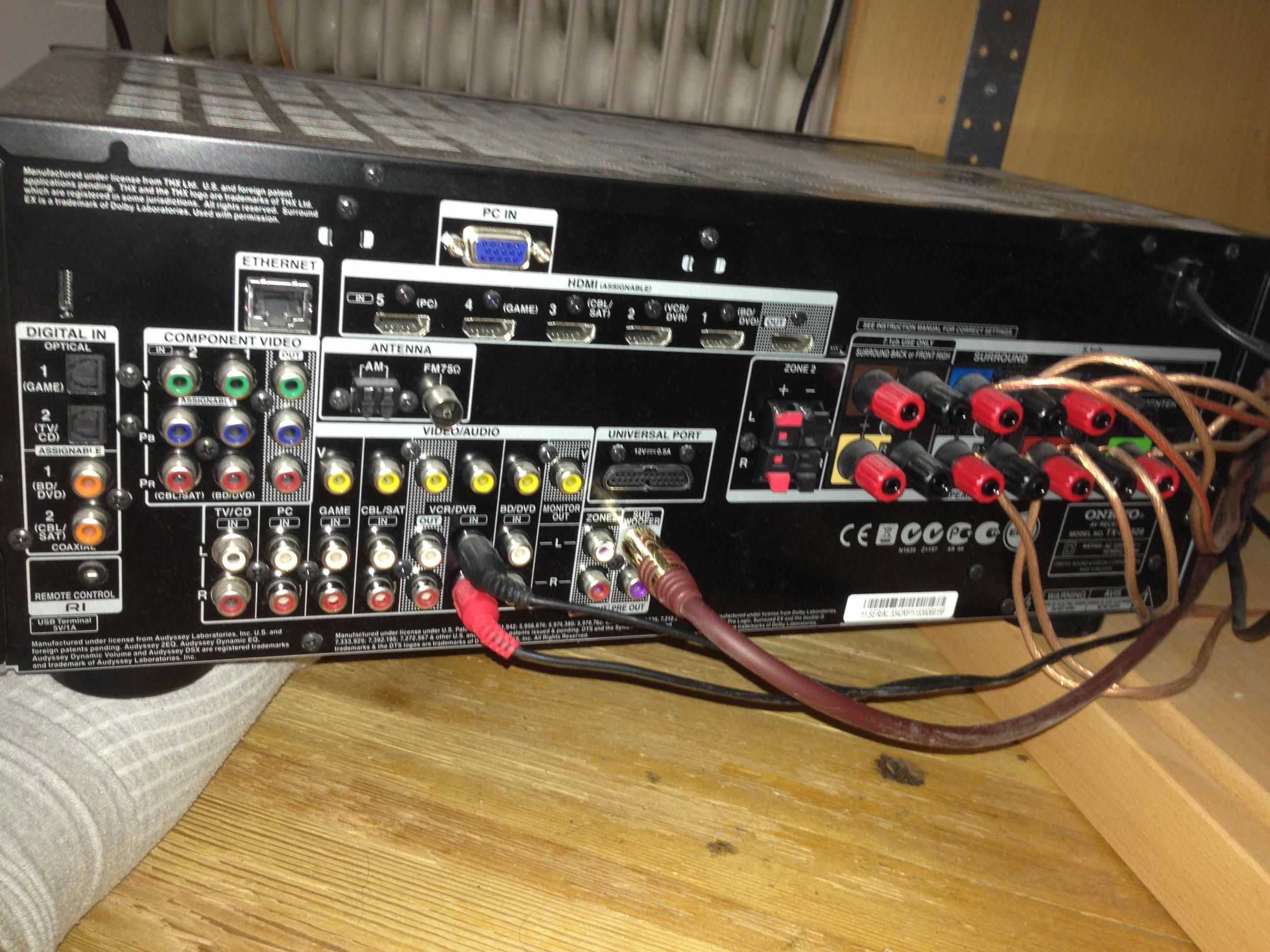 Aktuell habe ich den PC nur mit Sound am AVR stecken und zwar habe ich leider offenbar auch nur eine Onboard-Soundkarte in dem Acer Predator G7700, von der ein Kabel aus zum AVR führt, wo hinten beim Sound ein weißer und ein roter Stecker hinein führen!