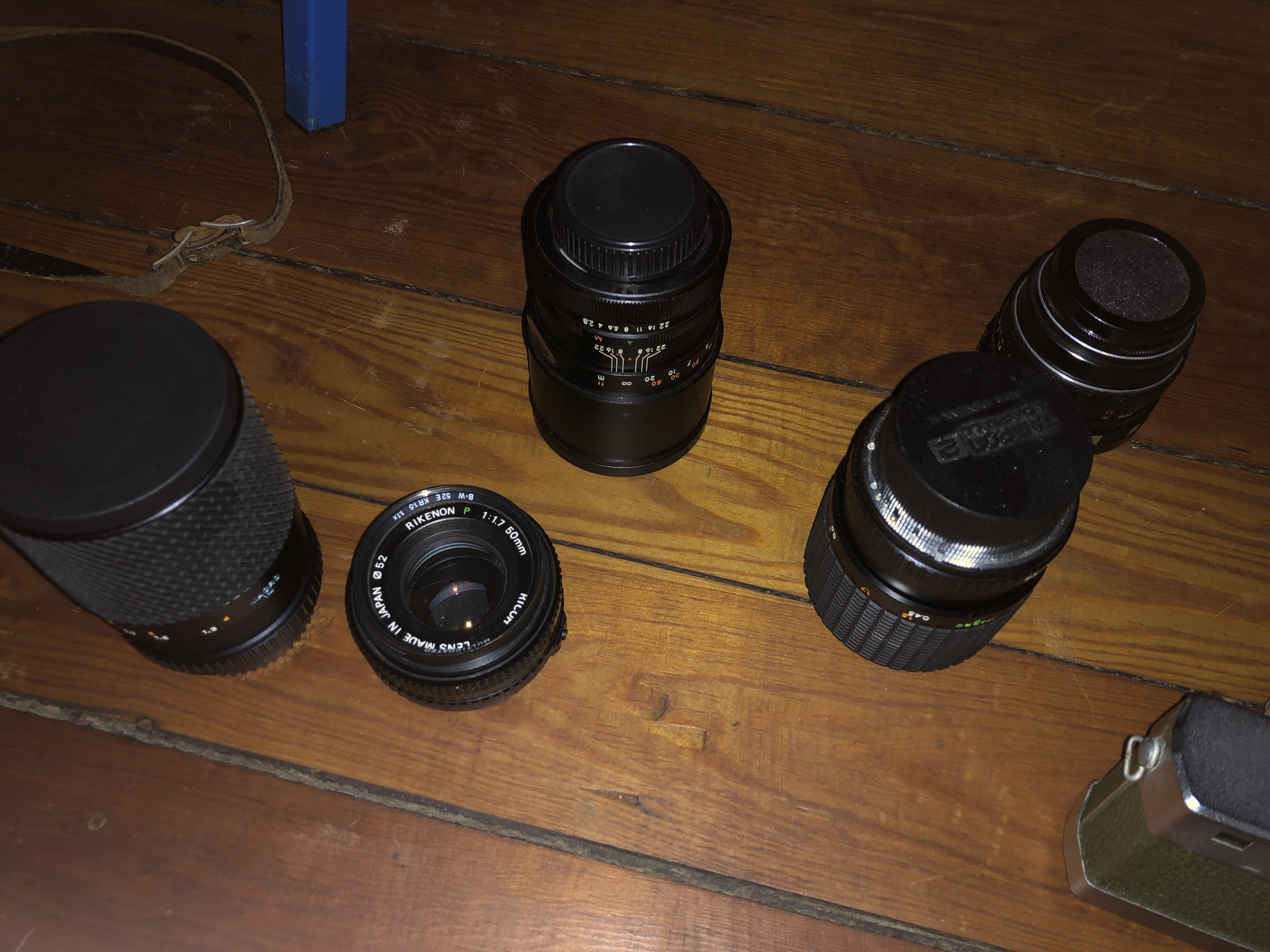 Erfahrungsgemäß ist das alles nicht viel Wert. Die Gläser bringen nur Geld, wenn sie absolut in Ordnung sind. Das ist bei alten Gläsern selten der Fall, oft ist das Öl zwischen den Blendenlamellen verharzt oder es ist Staub im Objektiv oder alles zusammen. Pilzbefall kann auch vorkommen. Gute Fotos der Linsen und durch das Objektiv mit offener Blende sind hier wichtig!