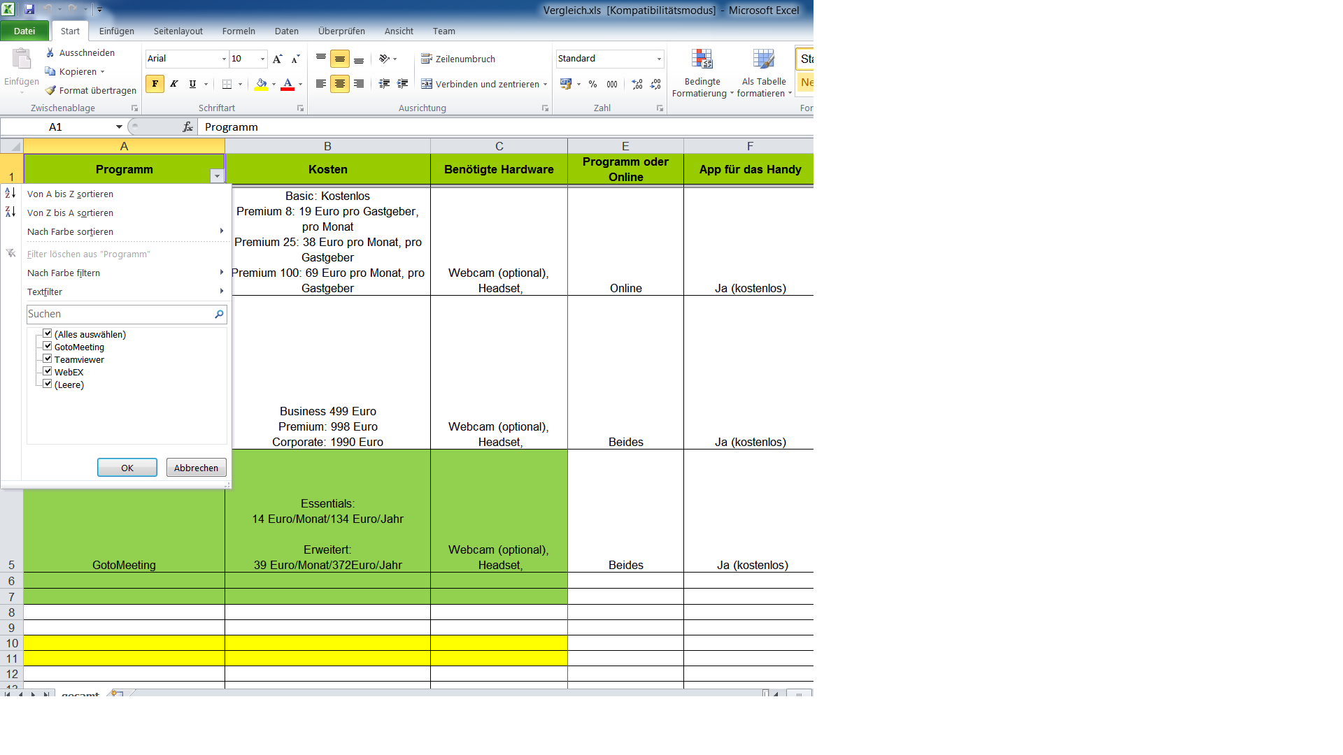 also entweder bin ich zu blöd oder es ist wirklich nicht so leicht. Ich suche nach einer Möglichkeit das ich in Open Office in einer Tabelle eine Drop Down liste einbauen kann. Also so wie bei Excel das ich auswählen kann welche Spalten ich mir Anzeigen lassen möchte. Ich hab zwar im Internet einiges Gefunden habe es auch geschafft einen Filter in Open Office zu erstellen, allerdings kann ich mir immer nur eine Spalte anzeigen lassen. In Excel konnte ich z.B. von 100 Spalten 10 Stück anzeigen lassen.