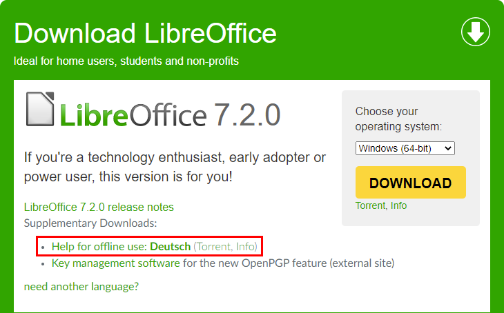 LibreOffice 7.2 Community und dessen Vorgänger LibreOffice 7.15 Community sowie der neueste LTS-Ableger LibreOffice 7.0.6 LTS können wie gewohnt direkt unterhalb dieser Meldung aus dem Download-Bereich von ComputerBase für die Systeme Linux, macOS und Windows heruntergeladen werden.