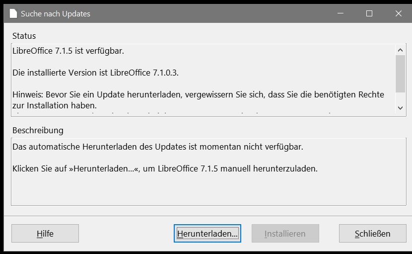 Nein, er zeigt nur an, dass eine neue Version verfügbar ist. Wenn Du dann den Download-Button drückst, öffnet sich in einem neuen Fenster die Downloadseite von LibreOffice.