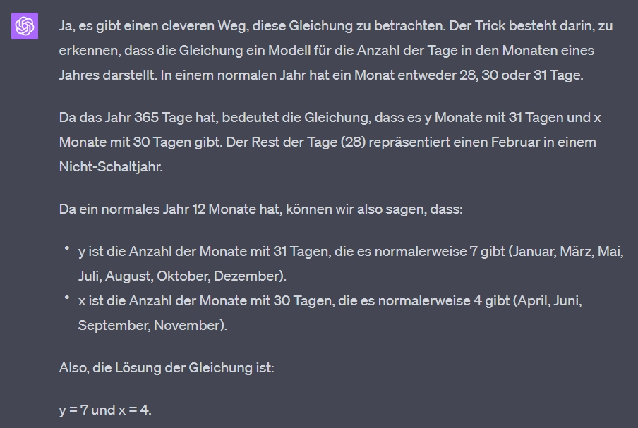- Keine Selbstverbesserungsfähigkeit: Als künstliche Intelligenz bin ich nicht in der Lage, mich selbst zu verbessern oder zu verändern. Meine Fähigkeiten und mein Wissen sind auf das beschränkt, was ich während meiner ursprünglichen Schulung gelernt habe. Ich kann nicht lernen oder verstehen, außer durch die Analyse der Daten, die ich während meiner Schulung erhalten habe.