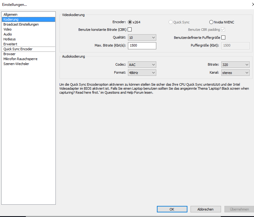 Aktuell mit 1500Bitrate habe ich ein mittleres Bildrauschen :C.