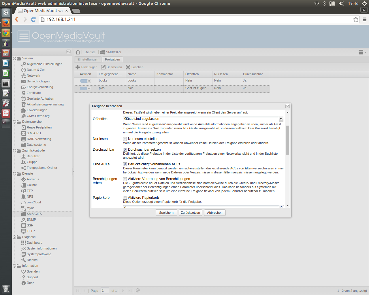 Ich habe mein RAID mit ext4 formatiert; FTP kann ich ausprobieren, aber ich meine mein zweitPC hat gezeigt, dass der Netzwerkcontroller meines Laptops wohl nicht der Beste ist.