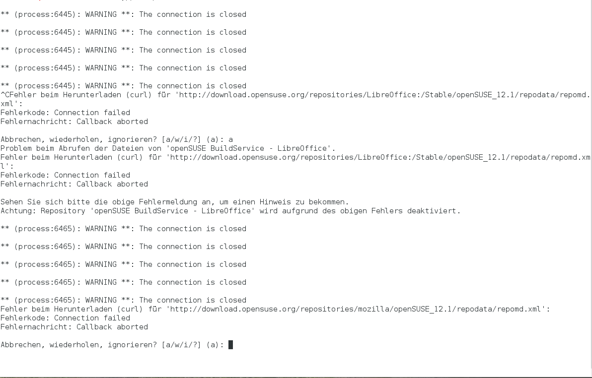 seit dem neuen OpenSuse 12.1 kann ich nicht mehr updaten. Nach durchführung eines Updates mittels zypper update via Konsole kommt folgende Meldung in der Konsole => siehe Anhang.