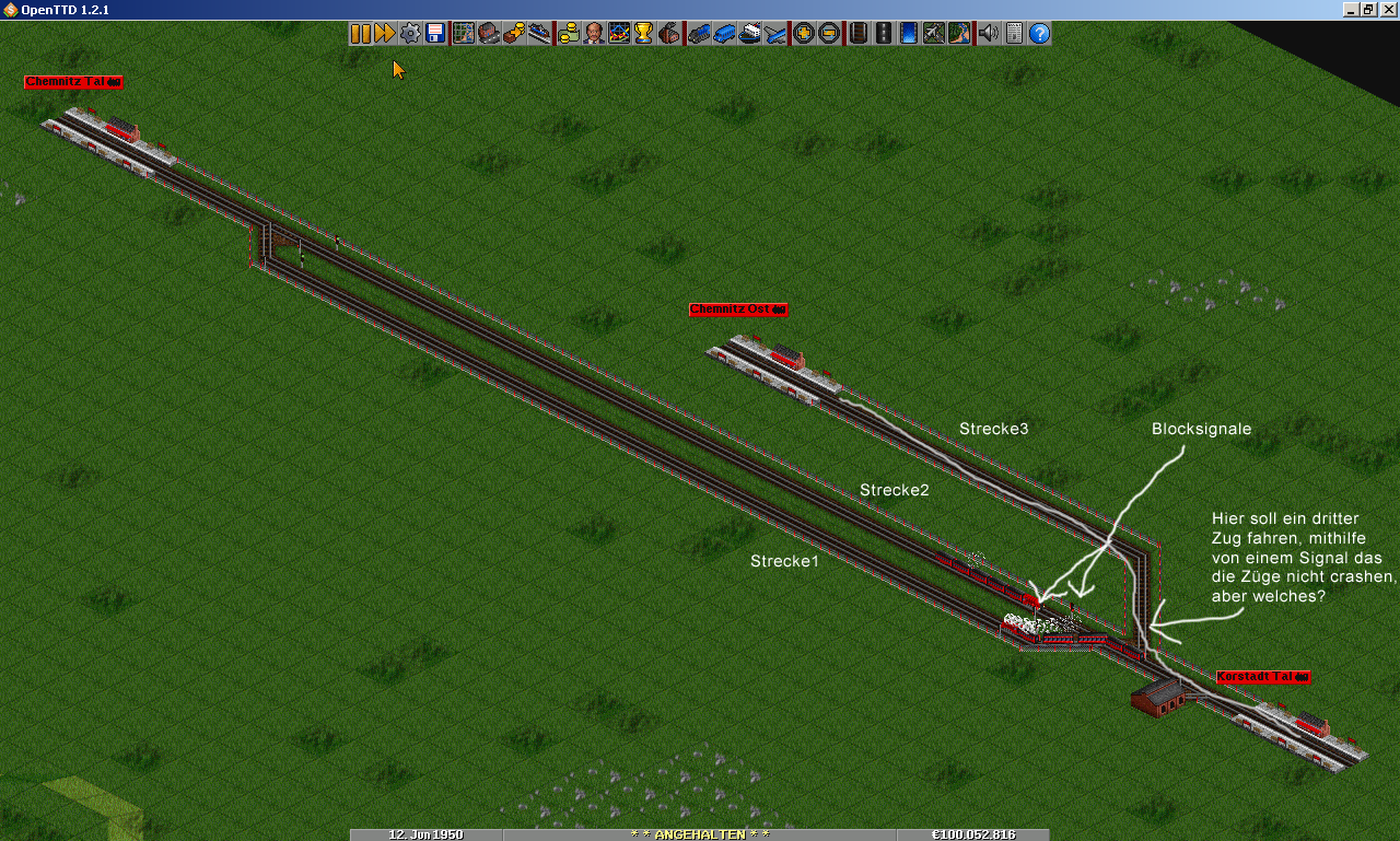 Ich möchte zwei Züge auf einem Gleis fahren lassen, aber es funktioniert bei mir einfach nicht.