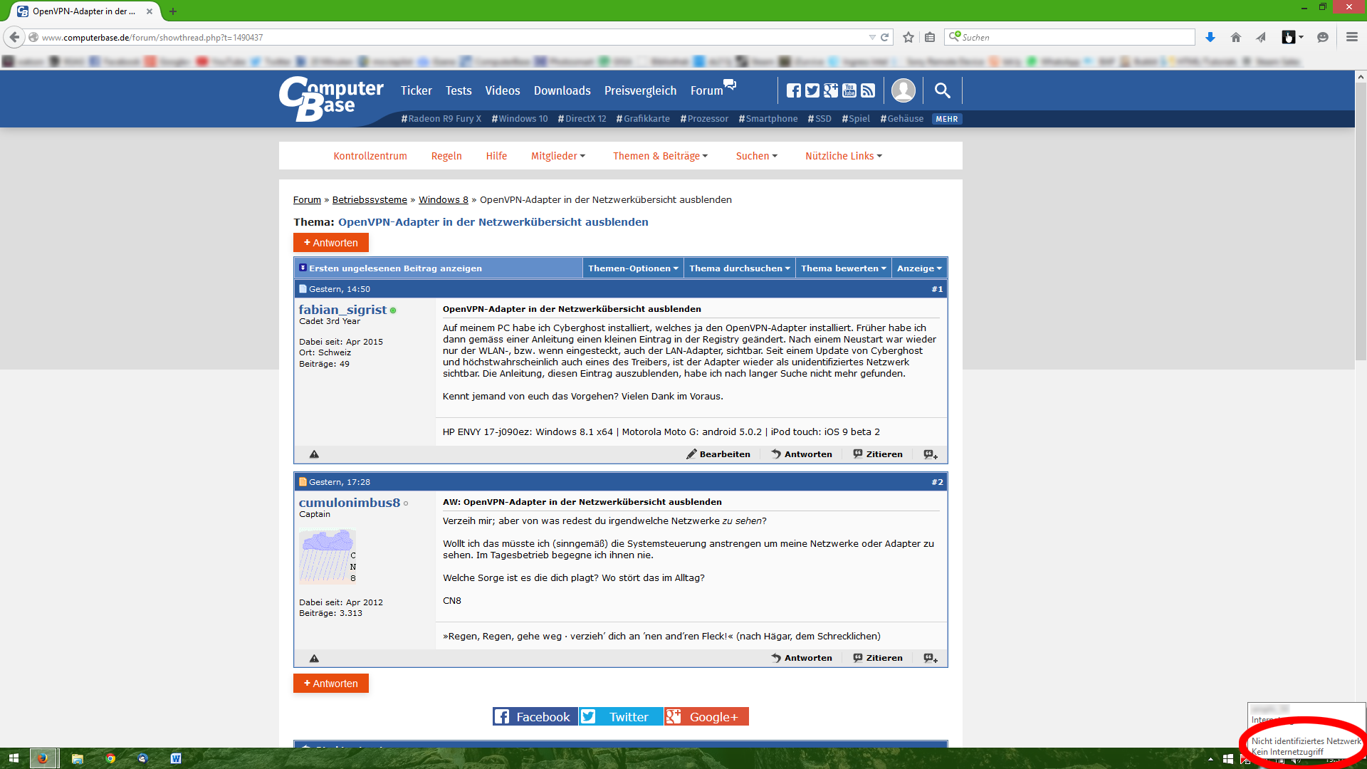 Auf meinem PC habe ich Cyberghost installiert, welches ja den OpenVPN-Adapter installiert. Früher habe ich dann gemäss einer Anleitung einen kleinen Eintrag in der Registry geändert. Nach einem Neustart war wieder nur der WLAN-, bzw. wenn eingesteckt, auch der LAN-Adapter, sichtbar. Seit einem Update von Cyberghost und höchstwahrscheinlich auch eines des Treibers, ist der Adapter wieder als unidentifiziertes Netzwerk sichtbar. Die Anleitung, diesen Eintrag auszublenden, habe ich nach langer Suche nicht mehr gefunden.