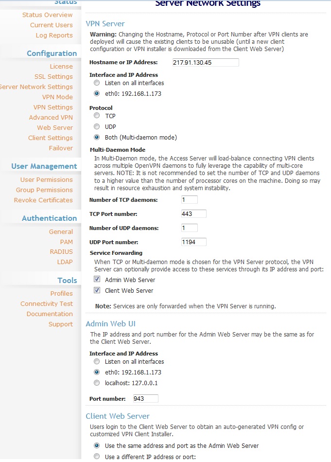 Installiert habe ich alles nach dem Quickguide auf der offiziellen Homepage und nachträglich im AdminGUI bei "Hostname" unsere Internet-IP angegeben.
