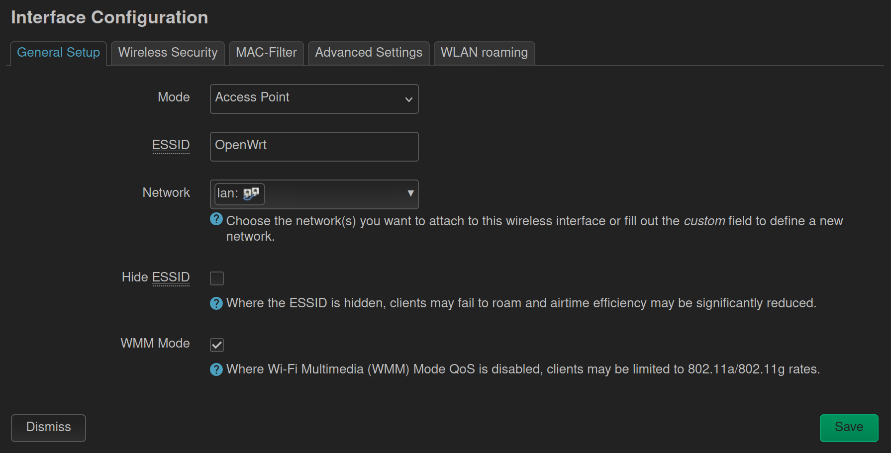 Ich habe auf einem alten TP-Link Router OpenWrt installiert. Leider geht irgendwie der Access Point nicht. Also das WLAN ist nicht an, obwohl konfiguriert. Ich habe mal alle Einstellungen gescreenshotet. Hat jemand eine Idee, was ich falsch mache?