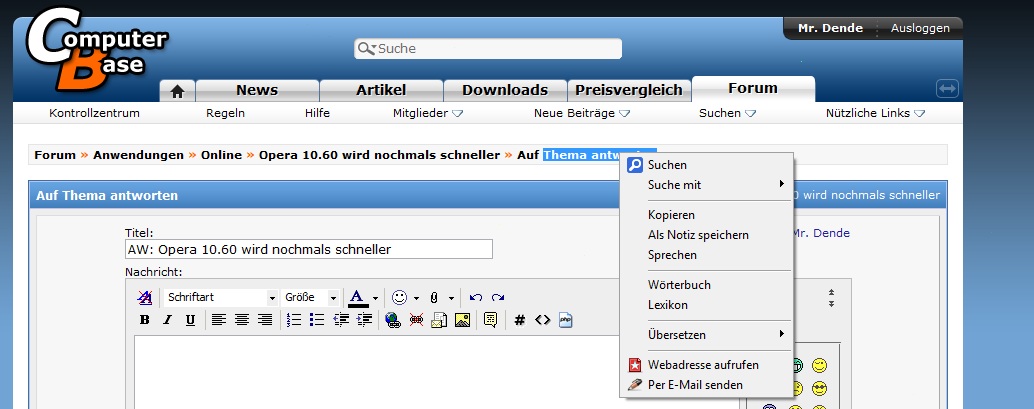 Ich benutze das E-Mail Zeug innerhalb vom Opera.