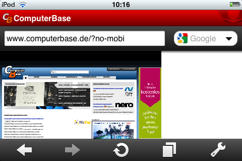 Was ich auch merke bei Safari gibt es an der Seite bei CB keine Werbung, bei Opera schon und das stört bei so kleinem Display sehr.