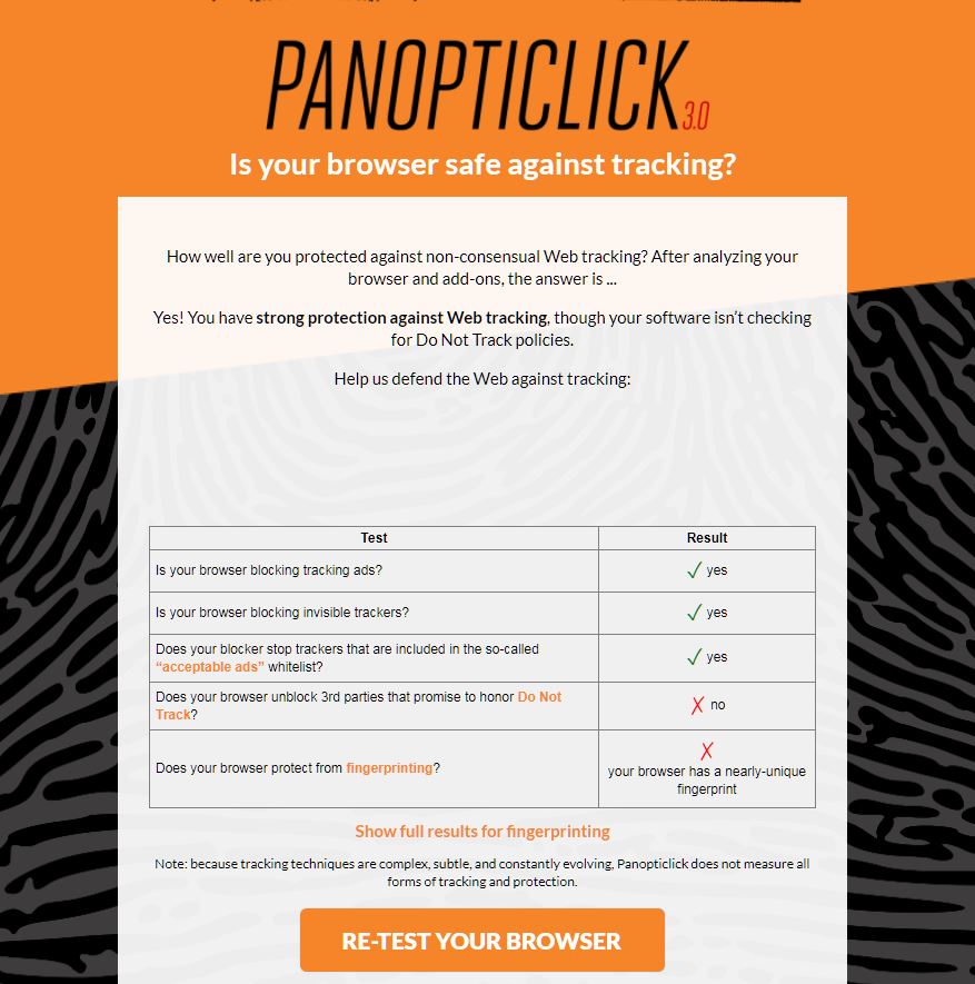 Der FireFox hat eine einzigartigen Fingerabdruck und somit ist man wiederum eindeutig identifizierbar. your browser has a unique fingerprint