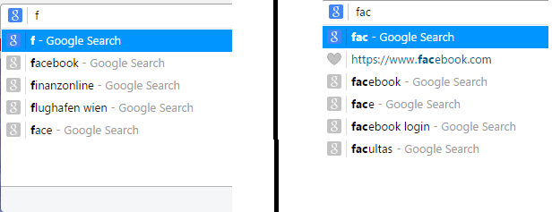 Lesezeichen werden in der Suchleiste/Webleiste nicht berücksichtigt