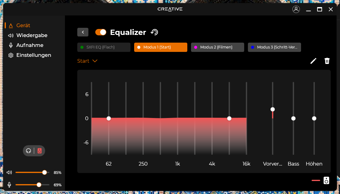 - Die Equalizer bei Creative hab ich () alles auf 0 gestellt. Lediglich den Vorverstärker auf 3