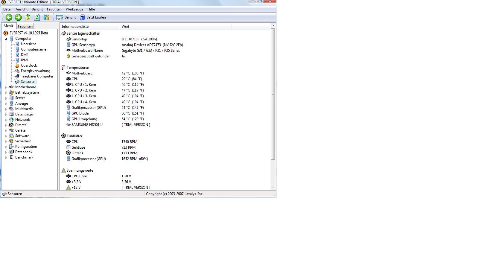 Was ich zum Beispiel seltsam finde ist, daß unter Last der Frontlüfter ganz gemütlich mit 700 seine Runden dreht, während sein CPU-Kumpel 2.000 Umdrehungen mehr reißt.