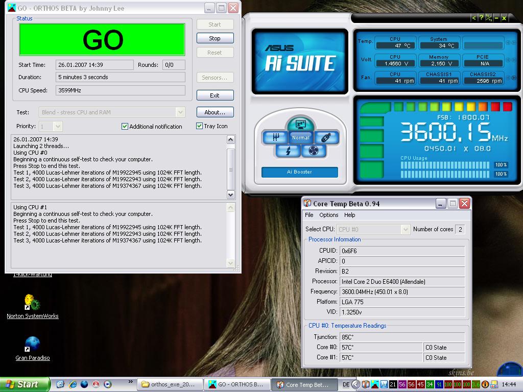 habe im bios 1,35V-core fsb 400 ram 1-1 und dann dual prime laufen lassen top werte