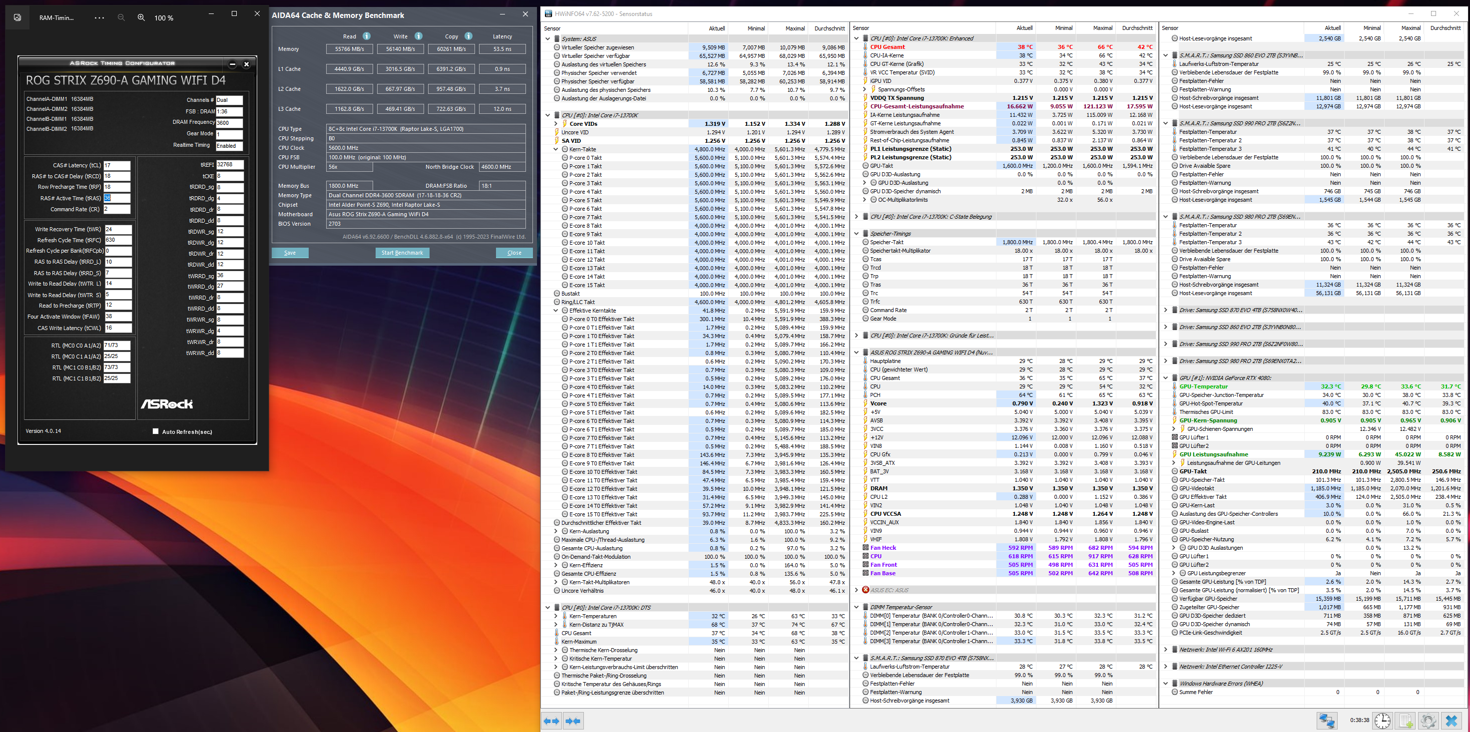 Intel Core i7-13700K, 4x16 GB DDR-3600, ASUS ROG STRIX Z690-A GAMING WIFI D4, NVIDIA RTX 4080 FE, bequiet Dark Power 13 850 Watt.