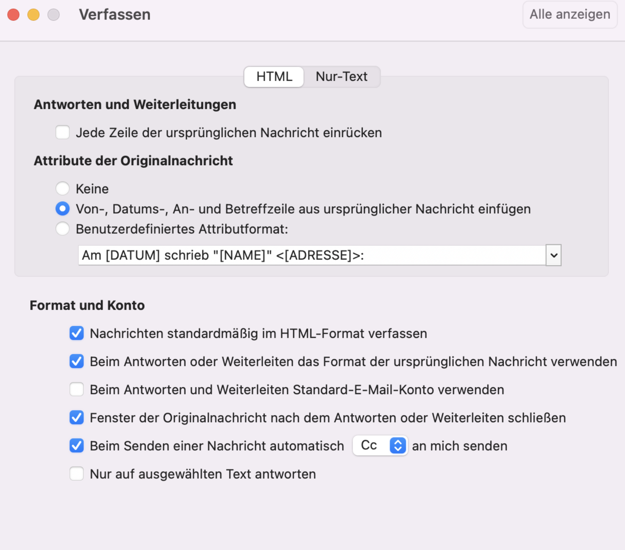 bei der aktuellsten Outlookversion (MAC) gibt es nicht mehr die Option "Option Standard Mailkonto für Antworten verwenden weg", was die Folge hat, dass der Nutzer manchmal versehentlich mit einem eingebundenen Postfach schickt anstatt mit Seinem.