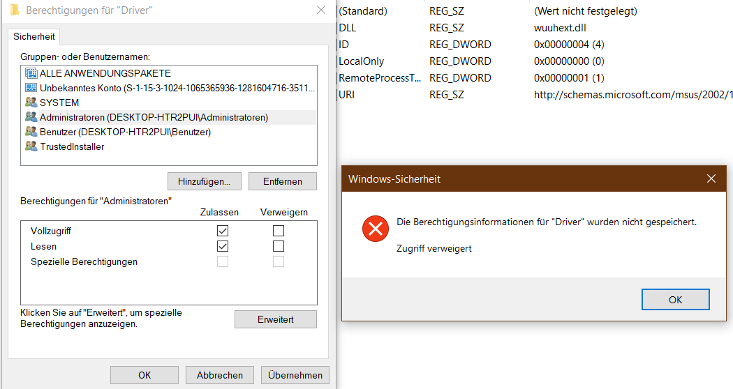 Hä? Du sollst zum Registrypfad gehen und hier dann den Besitz von Driver übernehmen.Schildkröte09 schrieb:Und wenn man den Besitz nicht vorher übernimmt, klappt es mit der Beschreibung im blauen Link nicht!